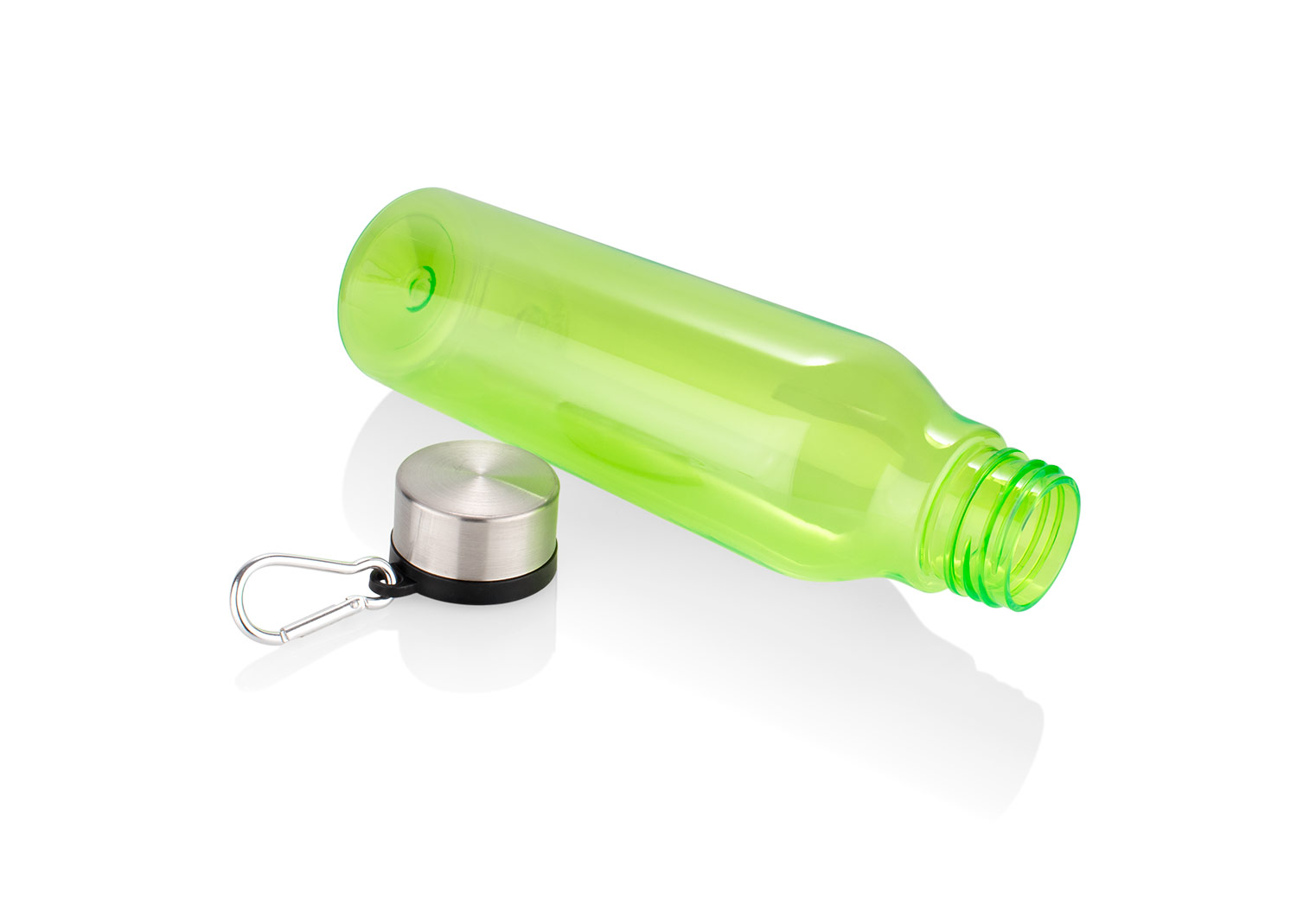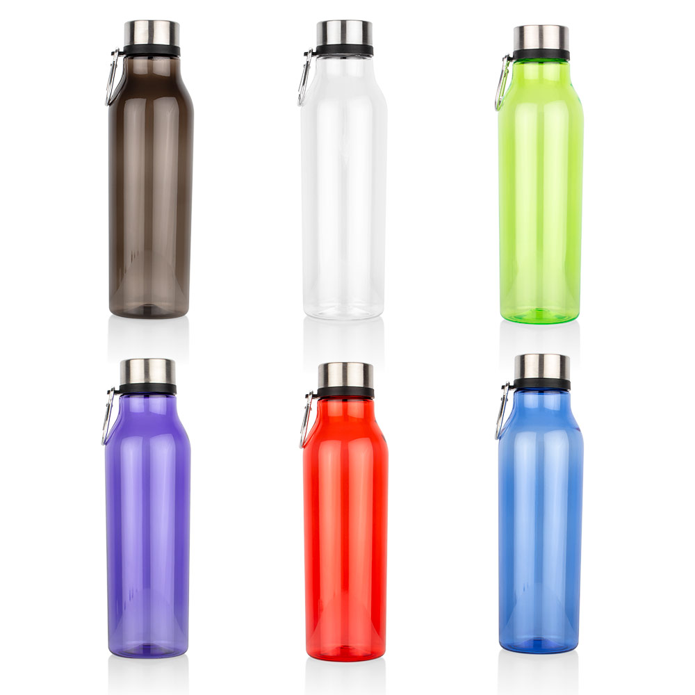 Botella deportiva con diseño compacto; la hace ideal para llevar al gimnasio, la oficina o actividades al aire libre. Cuenta con tapa de cierre giratorio que garantiza un sellado seguro, y un gancho carabinero integrado que permite sujetarla fácilmente a mochilas, bolsos o cinturones. Capacidad: 600 ml / 20 Oz. MATERIAL: RPET + Acero Inoxidable 201 + PP + Aluminio. MEDIDAS: Formato: (Alto X Diámetro): Con Tapa: (22,4 X Ø 6). Sin Tapa: (22 X Ø 6). Gancho: (4,8). Peso: 76 gr. ÁREA DE IMPRESIÓN APROXIMADA: Horizontal: 4cm. Vertical: 7cm. MARCA: Tampografía. EMPAQUE: 50 Unidades en caja máster de: 35 cm x 48 cm x 35 cm; Peso Bruto: 4,5 Kg; Peso Neto: 3,9 Kg.